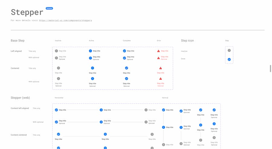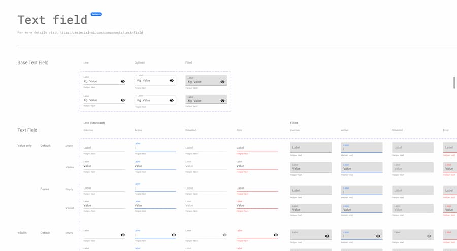 The UI kits contain many of the MUI components with states, variations, colors, typography, and icons. We frequently update it to sync with the most up-to-date MUI release.